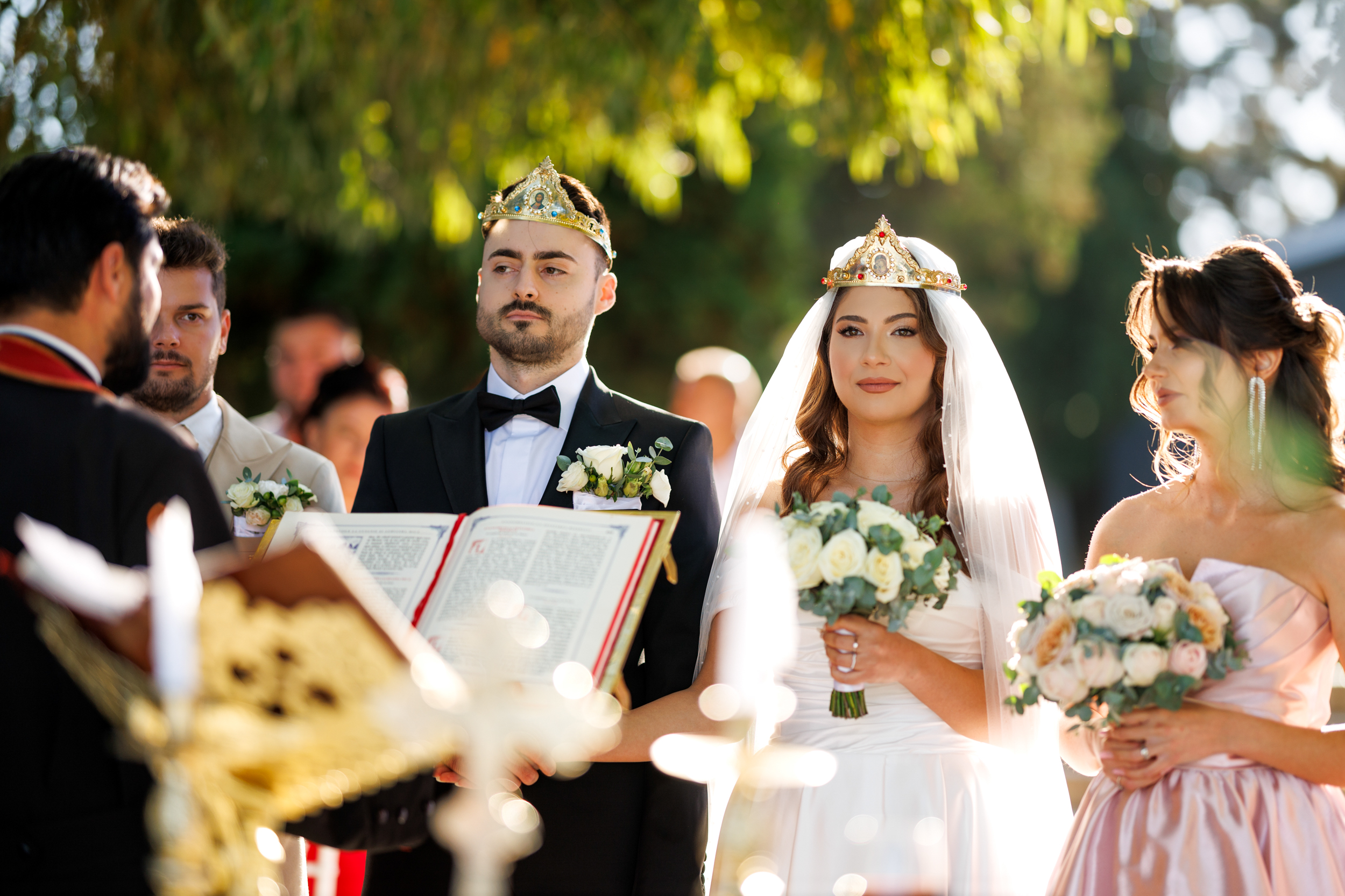 • Într-un cadru natural: O ceremonie într-un decor natural, fie pe un domeniu cu vedere panoramică, fie într-o grădină rustică, unde natura devine un fundal spectaculos pentru fotografii.
